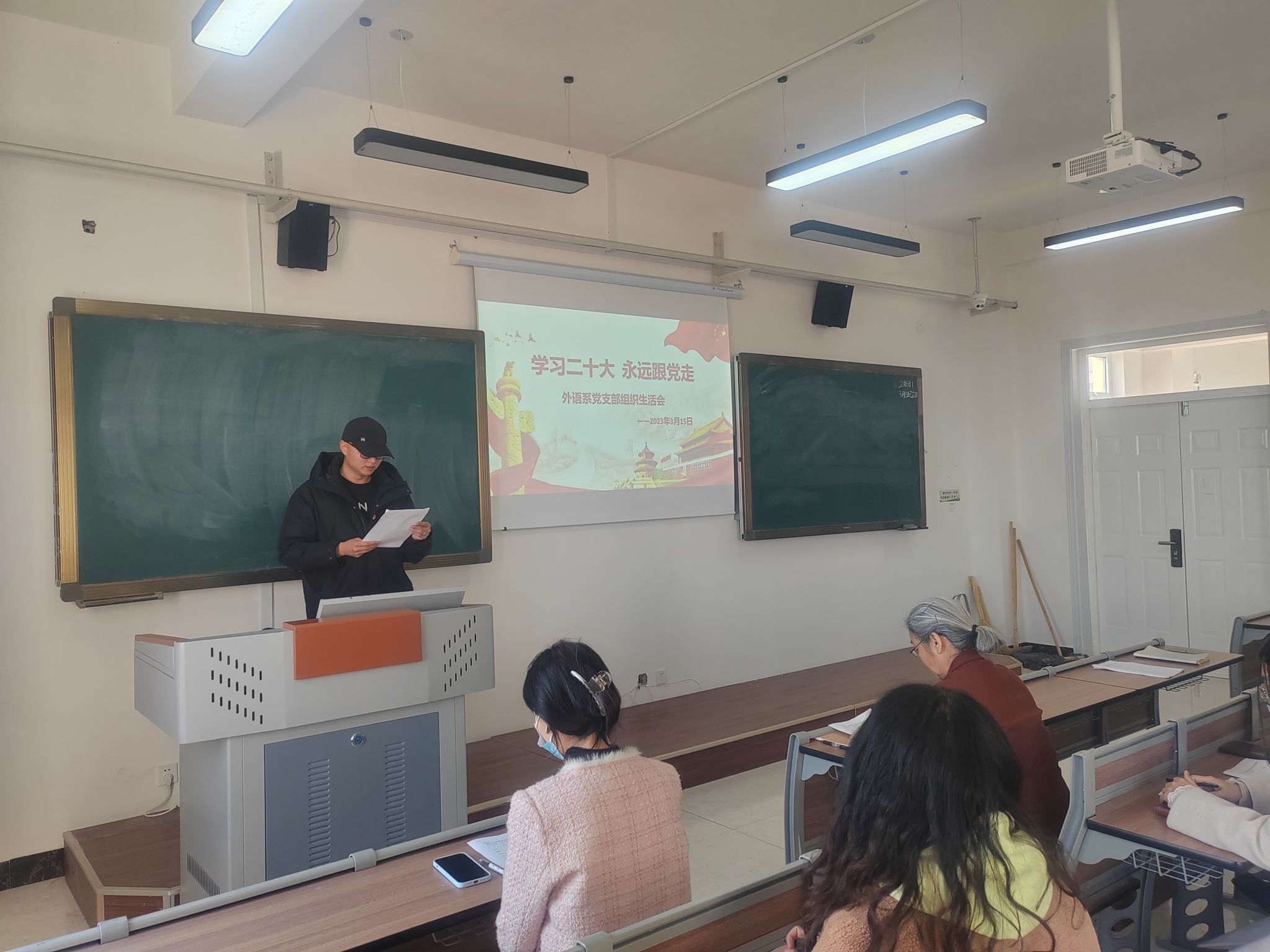 为深入学习贯彻习近平新时代中国特色社会主义思想和党的二十大精神,严格党的组织生活,强化党员教育管理监督,坚定不移推动全面从严治党向纵深发展、向基层延伸。2023年3月15日,外语系党支部召开组织生活会及开展民主评议党员工作,组织生活会由外语系党支部宣传委员刘思奇主持。