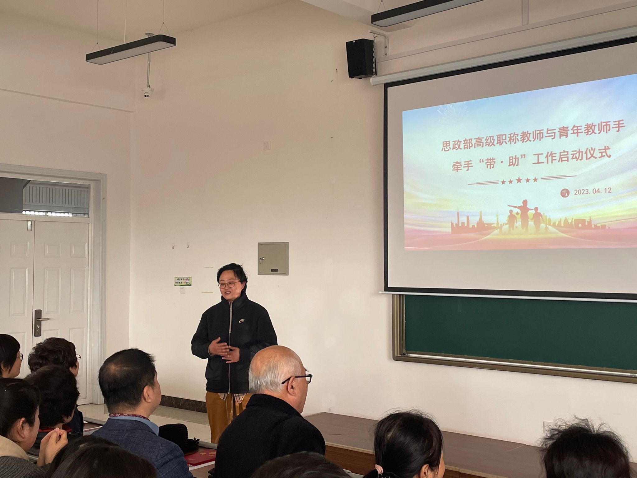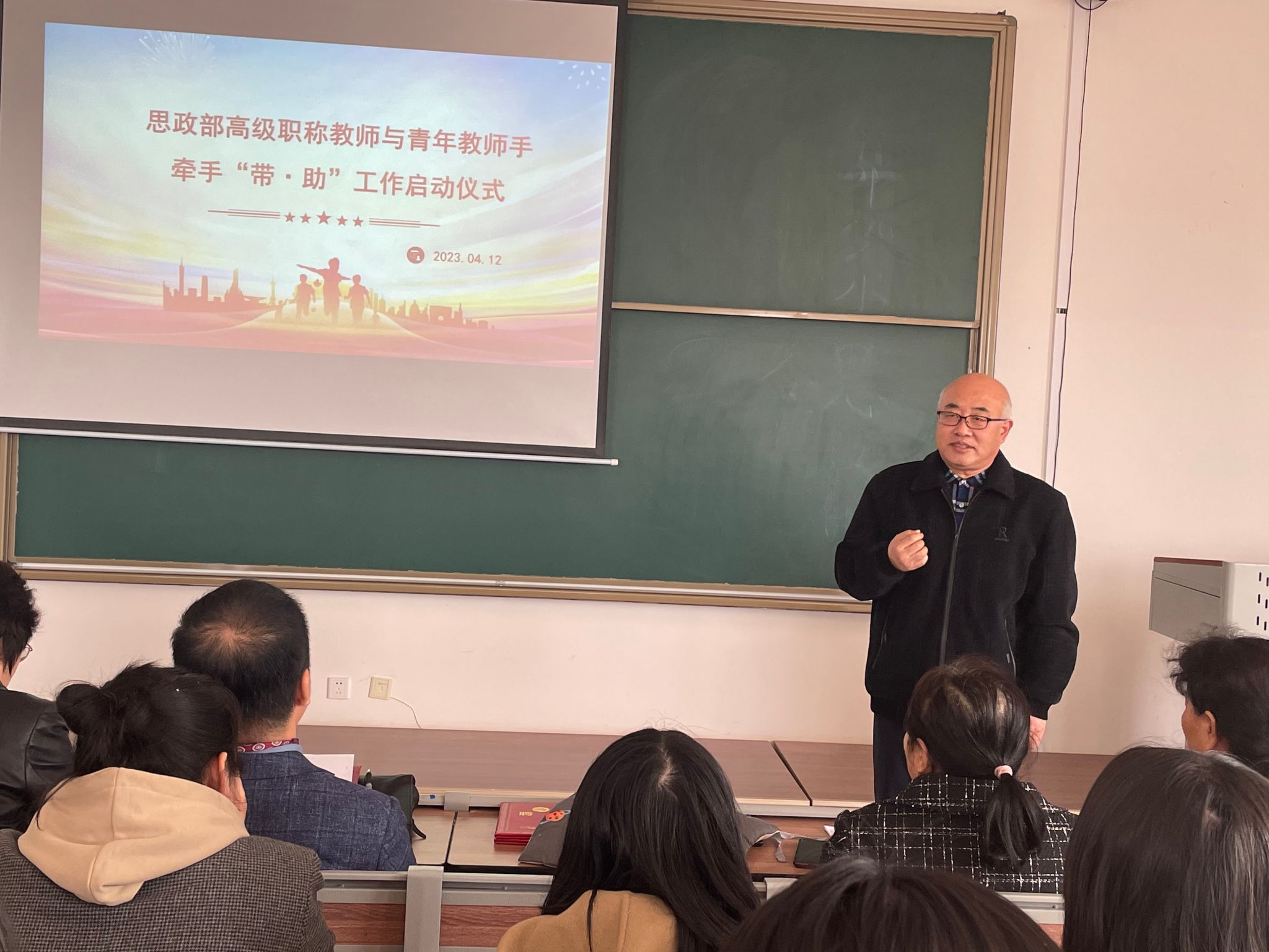 为增强青年教师的理论功底和专业学术修养,进一步提升思政教师的教学科研水平,4月12日下午,思政部高级职称教师与青年教师手牵手“带·助”工作启动仪式在厚德楼举行。启动仪式由思政部主任朱秀莉同志主持,思政部全体教师参加。