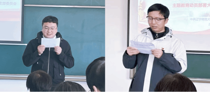 思政部党支部组织委员孙鸿文同志宣读了此次主题教育的领导小组成员及主要工作职责;思政部党支部宣传委员武乔军同志宣读了此次主题教育的具体工作计划和时间安排。