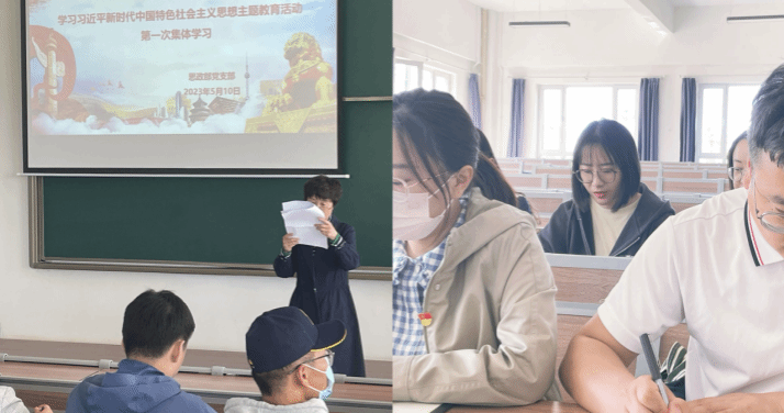2023年5月10日,思政部党支部在6-105教室组织开展学习习近平新时代中国特色社会主义思想主题教育活动,集体学习习近平新时代中国特色社会主义思想,思政部党支部书记刘彦清以及党支部全体党员参加此次学习活动。