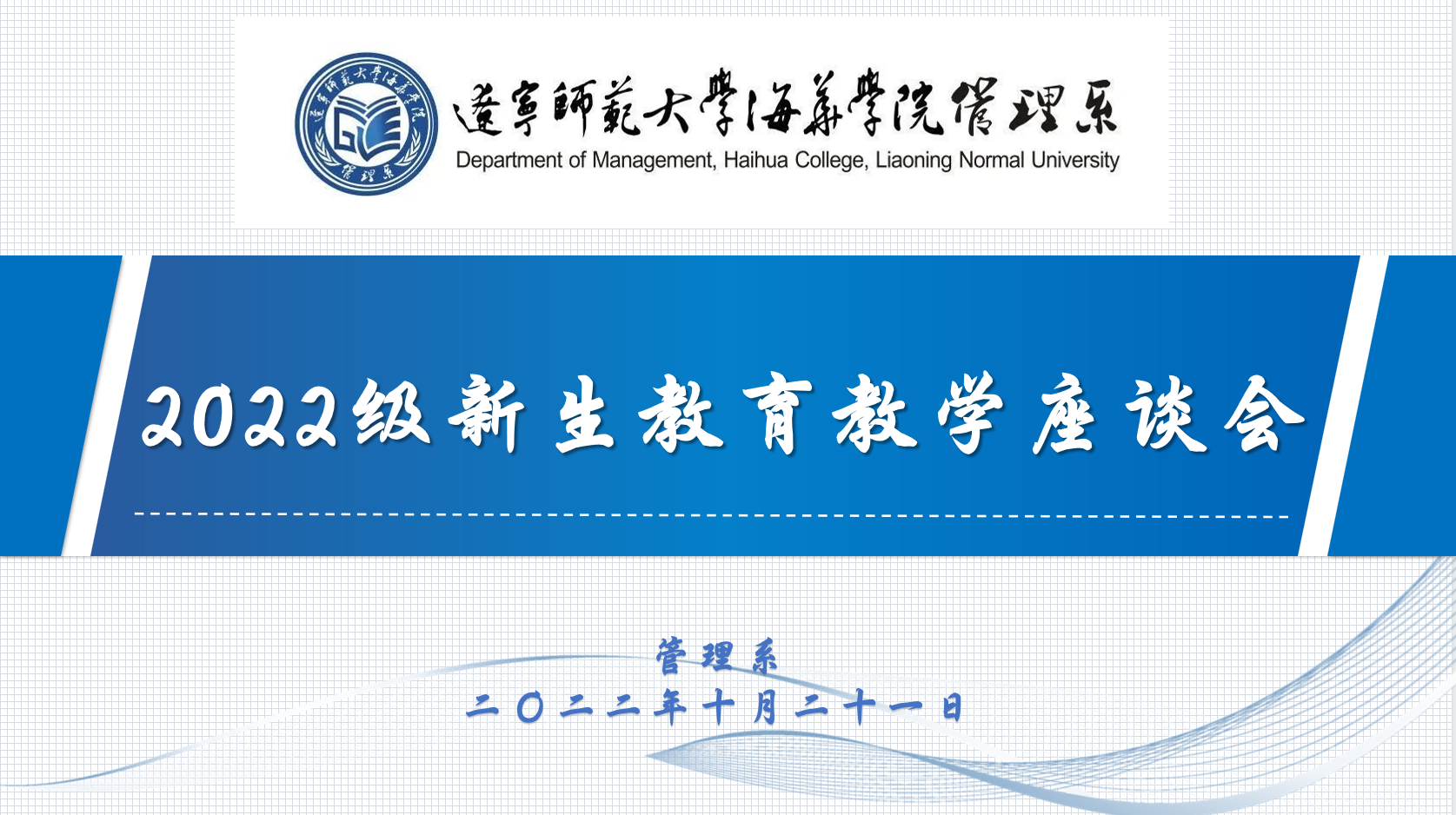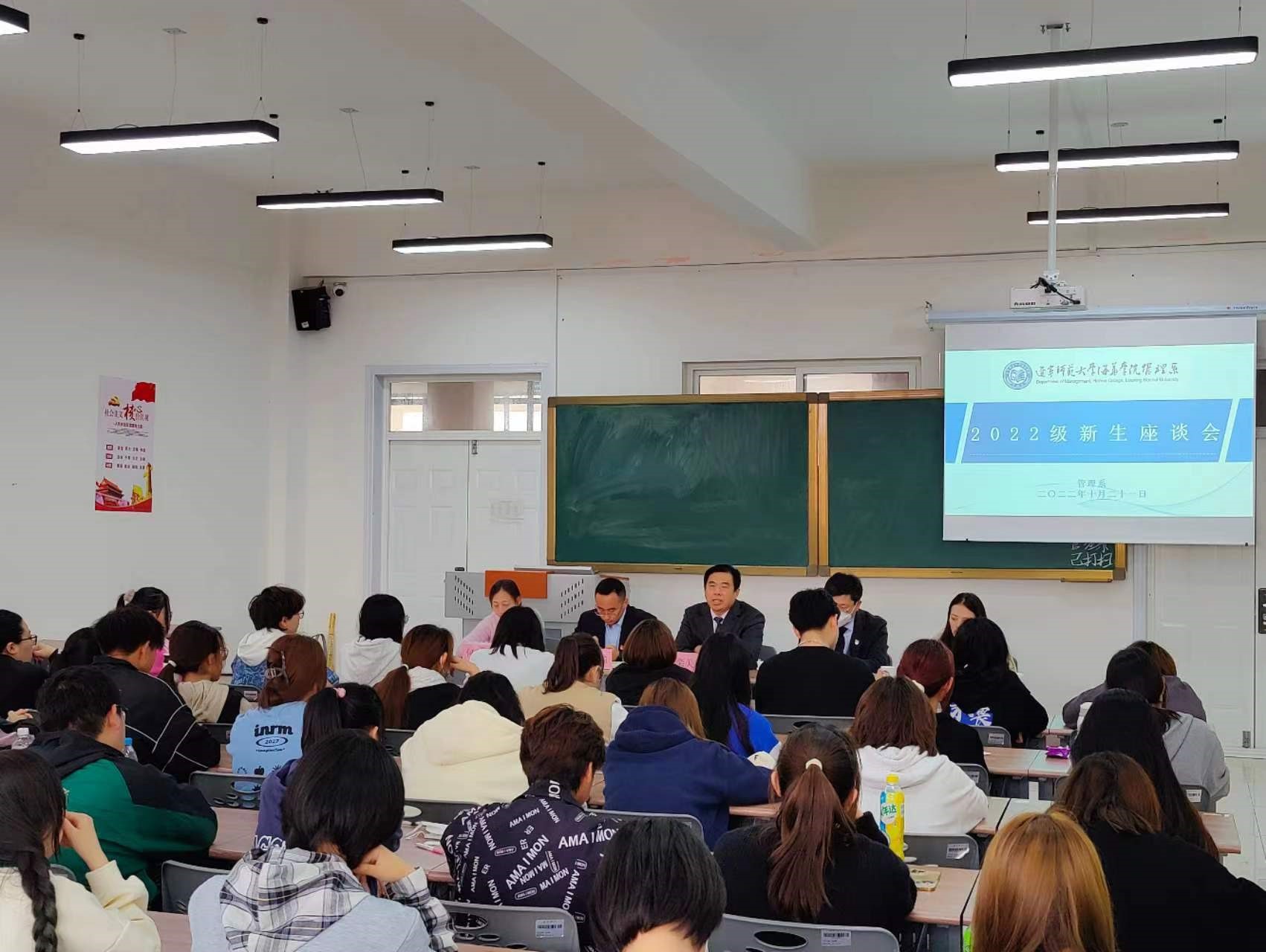 为进一步了解管理系2022级新生入学以来的学习生活情况,更好推进教风、学风建设,促进管理系教育教学、管理与服务等工作的提高。2022年10月21日下午15时30分,管理系在日新楼2-102室,组织召开2022级新生教育教学与管理座谈会。管理系主任栾美晨教授、教学副主任朱爱辉副教授、教研室负责人、辅导员参加并与2022级全体新生亲切座谈交流。本次座谈会由辅导员梁瑜主持。