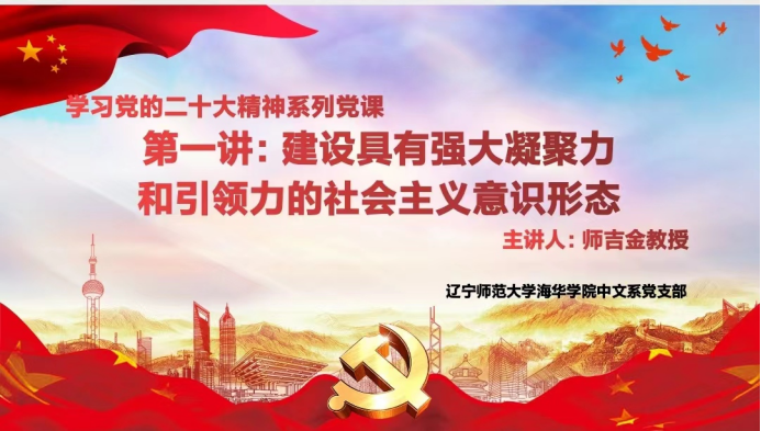 为深入学习贯彻落实习近平总书记在报告中的重要指示精神,将学习活动持续引向深入,11月30日中文系党支部邀请完美平台理论宣讲团成员、思政部师吉金教授通过腾讯会议的方式作了题为《建设具有强大凝聚力和引领力的社会主义意识形态》的主题宣讲,拉开了中文系学习党的二十大精神系列活动的序幕。中文系党支部书记郑丽娜主持会议,中文系全体教师和学生党员参加了此次宣讲活动。