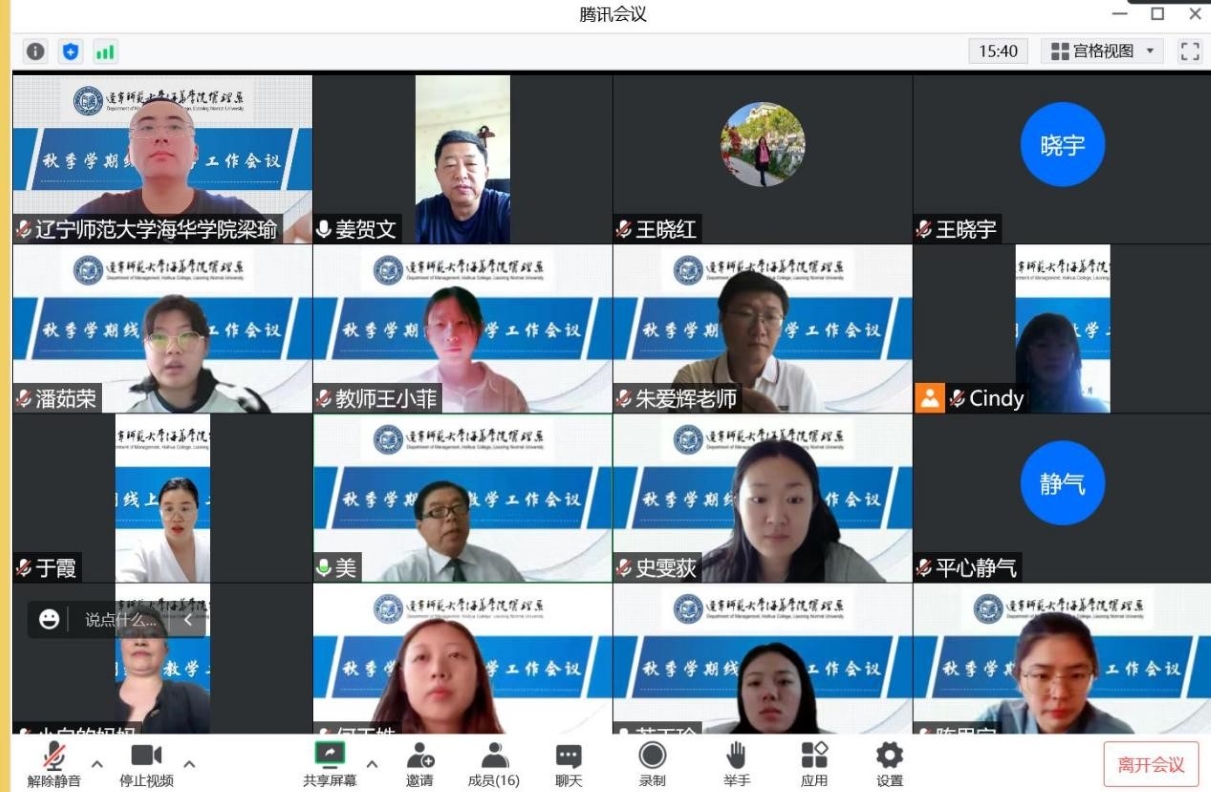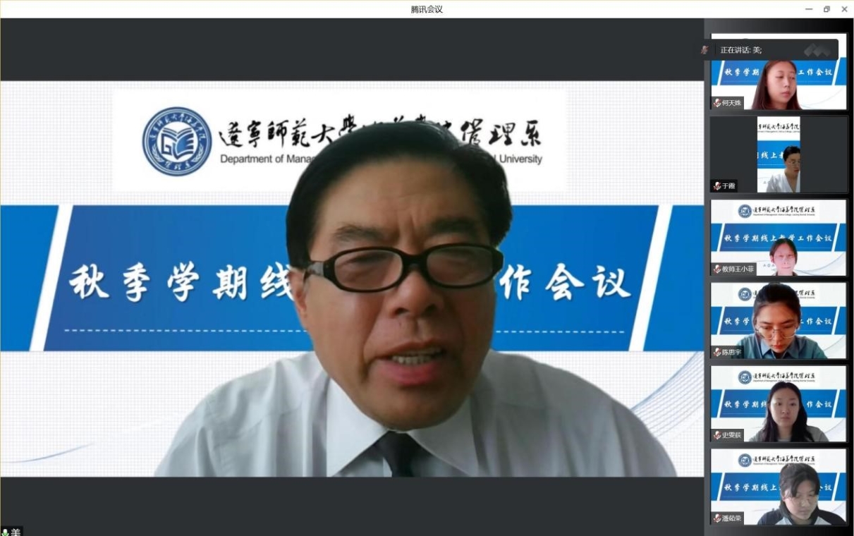 为切实做好疫情防控工作,确保教师不停教,学生不停学,根据上级有关工作要求,结合管理系实际,管理系于2022年9月8日组织召开2022—2023学年第一学期线上教学工作会议。管理系主任栾美晨教授、教学副主任朱爱辉副教授、学生辅导员及全体任课教师参加会议。会议由管理系主任栾美晨教授主持。