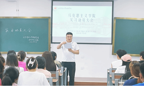 7月3日晚,马克思主义学院在东校区1-209室召开实习动员大会,参加会议的有马克思主义学院副院长刘彦清、孙鸿文,实习指导教师代表武乔军以及20级思政专业全体学生。本次动员大会由副院长刘彦清主持。