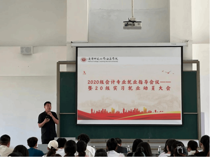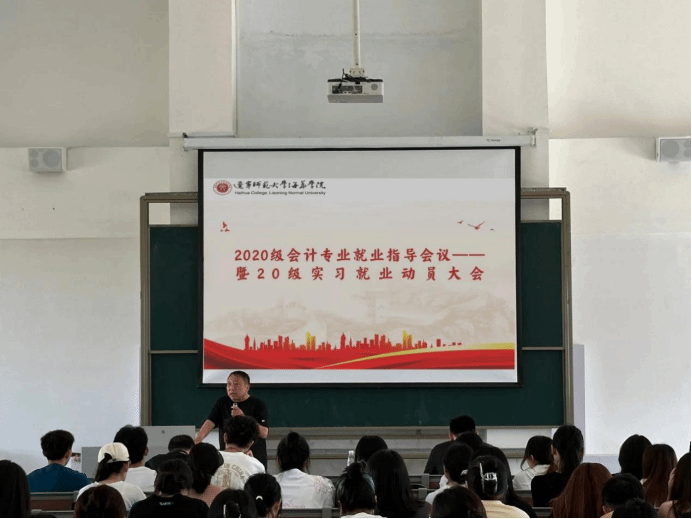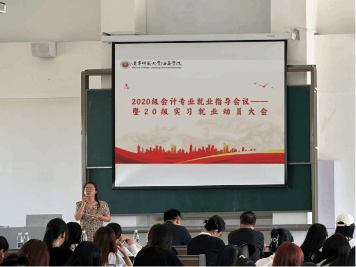实习是对大学期间学习、实践和生活等多方面能力的检验和提升,更是提升就业竞争能力的重要途径,希望通过此次会议让大家对毕业实习以及当前的就业形势有一个正确的认识,用积极的态度迎接即将到来的实习任务。为保证2020级会计专业学生实习工作顺利进行,会计系在东校区1号教学楼213教室召开2020级会计专业就业指导会议——暨2020级实习就业动员大会。会计系刘迪主任、李凌峰副主任、郭向超副主任以及辅导员李娜老师出席本次大会。本次会议由李娜老师主持。