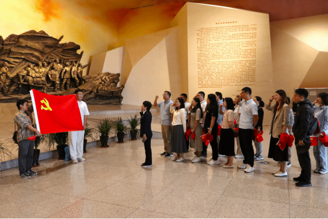 马克思主义学院党员同志们于9月2日上午到达丹东抗美援朝纪念馆,进入展馆之后,在刘彦清书记的带领下,全体党员重温入党誓词。“我志愿加入中国共产党,拥护党的纲领,遵守党的章程,……随时准备为党和人民牺牲一切,永不叛党。”宣誓结束之后,全体党员在抗美援朝纪念馆进行了参观学习,通过认真聆听工作人员的讲解,全体党员对于抗美援朝这场战争、抗美援朝整个运动、中朝人民的深厚友谊、英雄模范烈士付出的巨大牺牲,都有了更加深刻的认识。