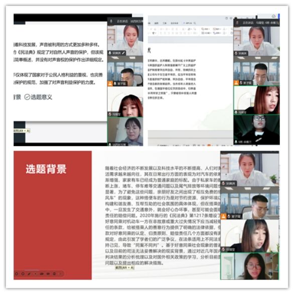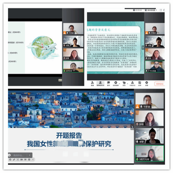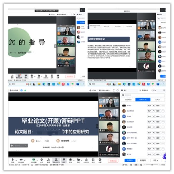 开题答辩分学生汇报和答辩教师点评两个环节进行,每名同学通过PPT展示,围绕选题背景、选题意义、国内外研究现状、论文大纲等方面进行陈述。各小组的答辩老师根据学生陈述情况进行提问,并对学生的开题报告提出修改意见和建议。参与答辩的同学们收获了许多宝贵意见和建议,清楚了开题报告的不足以及所需完善的方向,并表示将会根据老师的意见和建议进一步修改完善自己的开题报告,更加深入去了解自己的选题,为后续撰写毕业论文打下良好的基础。