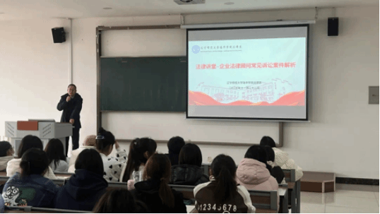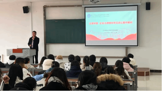 11月22日下午,法律系《法律讲堂》首场专题讲座在厚德楼6-207教室开讲,北京市盈科(大连)律师事务所刘子勋律师以“企业法律顾问常见诉讼案件解析”为主题,为200余名法律系师生上了一堂生动的法律实务课。