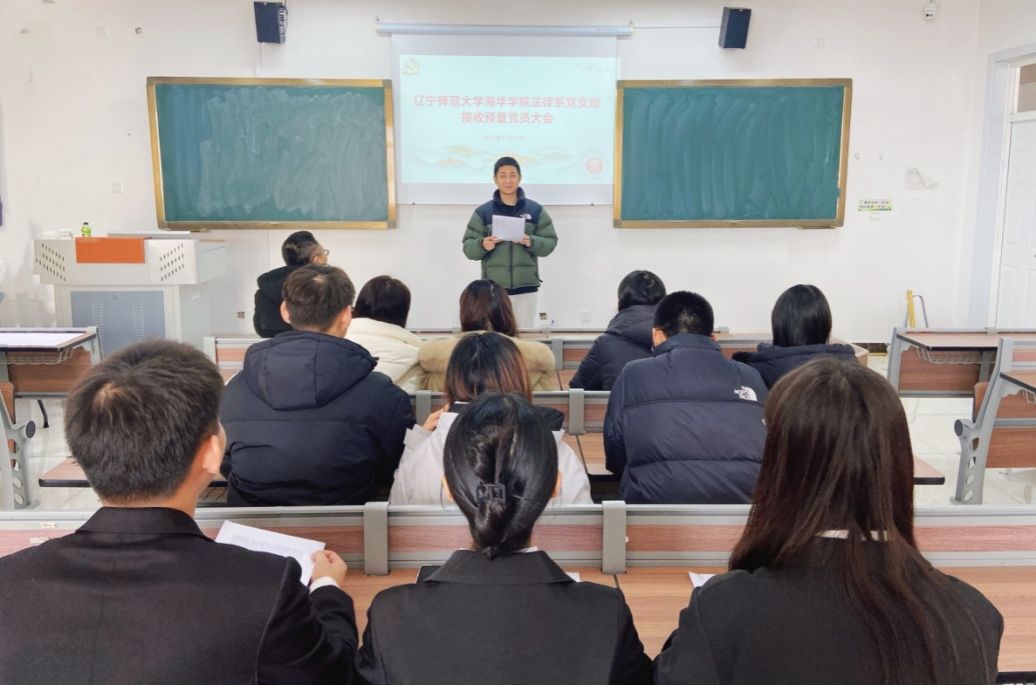 2023年12月13日下午,法律系党支部于5-307教室召开预备党员接收大会,讨论焦嘉鹏等3名发展对象接收为预备党员问题。本次会议由组织委员王允泽主持,支部全体党员参加。