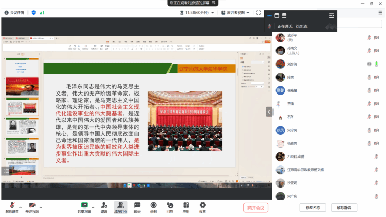 2024年2月25日,马克思主义学院党支部于线上召开支部党员大会,党支部书记刘彦清为全体党员上了题为“走近伟人毛泽东”的党课。