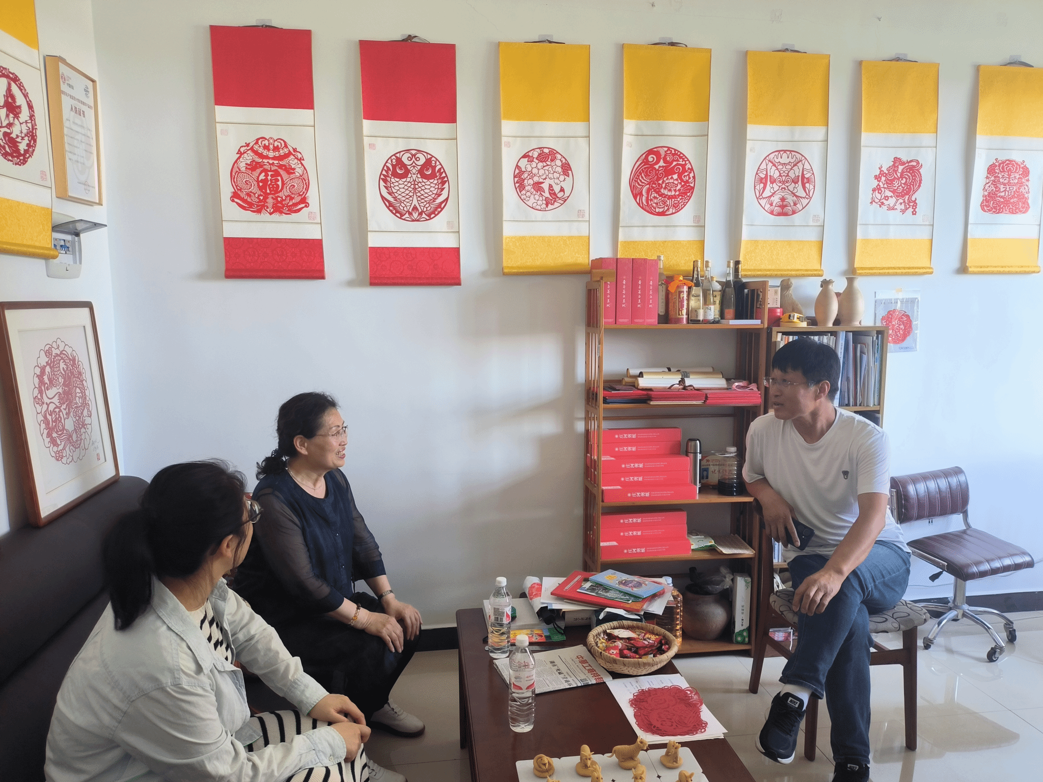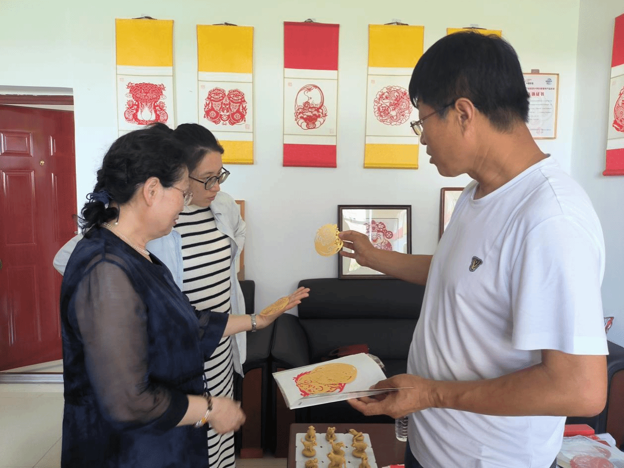 6月26日下午,文学院院长郑丽娜、教学负责人曲波和汉语国际教育专业负责人佟秋月一行三人来到大连北黄海企业管理有限公司,参观了他们在非遗传承方面的成果,如剪纸、面人等工艺作品。