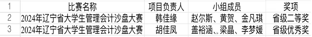 2024年11月2日,管院学子赴辽宁省大连市旅顺口区参加“2024年第四届辽宁省大学生管理会计沙盘大赛”,传来喜讯。由负责人韩佳缘的带领赵尔斯、黄贺、金凡琪团队荣获省级二等奖,由负责人胡佳凤带领的盖裕涵、梁晶、李梦媛团队荣获省级优秀奖。