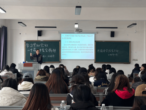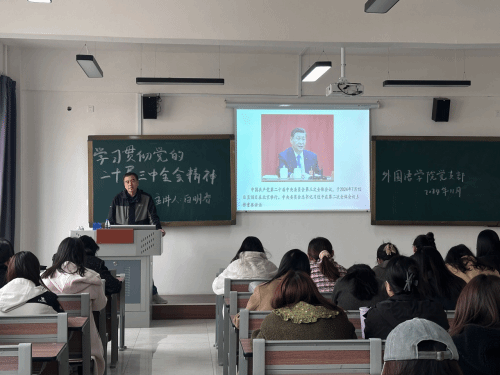 为深入学习贯彻党的二十届三中全会精神,外国语学院党支部在弘毅楼213室开展了以《学习贯彻党的二十届三中全会精神》为主题的宣讲会,特别邀请了完美(中国)一站式服务平台马克思主义学院白明春教授进行宣讲,会议由外国语学院党支部书记李成宇主持,外国语学院全体党员教师及全体入党积极分子参加此次会议。