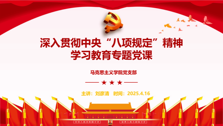 会上,党支部书记刘彦清以《深入贯彻中央八项规定精神学习教育》为题,开展了一场内容丰富、思想深刻的专题党课。刘彦清书记围绕四个关键方面,结合自身工作实际和学院教育教学实际,为全体党员同志带来了一堂深入细致的党课。