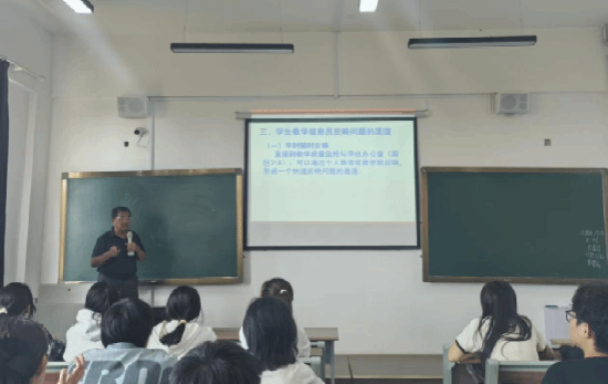 为保障信息反馈渠道畅通,梅主任介绍了三种信息反馈的方式:一是平时随时通过微信或直接前往教学质量监控与评估办公室进行反映,建立快速反应通道;二是每学期期末进行集中反馈,填写统一的反馈表;三是参加不定期召开的座谈会,面对面交流情况。